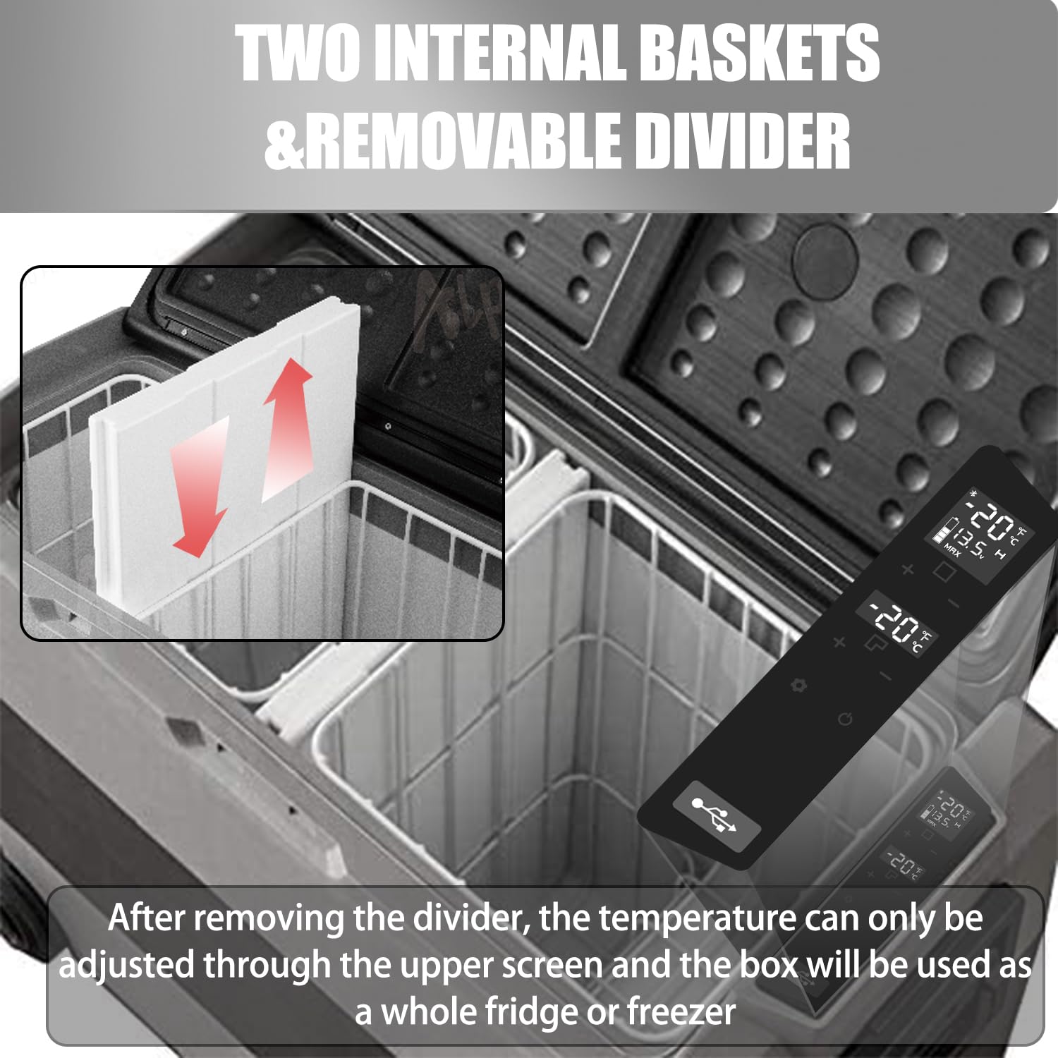 - ❅ 50L LARGE CAPACITY, PARTITIONED STORAGE. It can be a fridge or freezer for storing many types of food and items. And the freezer room incorporates a grid of storage baskets to easily get food without stickiness.