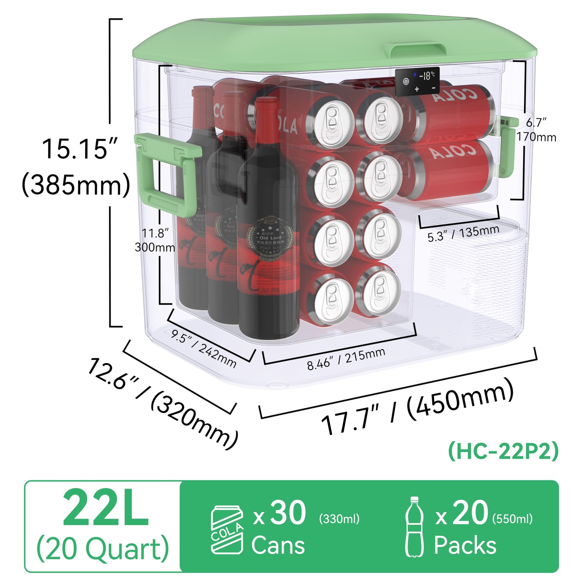 - 【ULTRA-EFFICIENT COOLING: -18°C Rapid Chill & 22L Spacious Design】Powered by advanced copper-wire compressor technology, achieves 0°C within 15 minutes and -18°C within 40 minutes (ambient ≤25°C) - ideal for preserving ice cream and meats. 22L capacity equals storing 30x 330ml cans + ice packs. High-density insulation maintains temperature 8+ hours during power outages (tested in UK 10°C ambient).