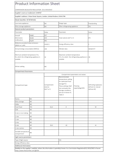 - Energy Efficient & Low Noise – Rated E-Class for energy efficiency, this fridge helps reduce running costs. Operating at just 40dB, it runs quietly and ideal for open-plan kitchens or quiet spaces without disturbance.