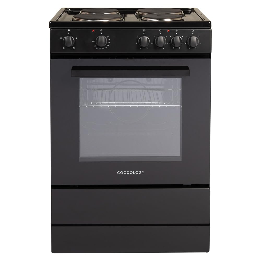 Cookology CFSP600BK/1 Freestanding Electric Single Cooker in Black - Solid Plate Top - 68 Litre Capacity - 60cm Wide - 4 Cooking Zone Hob - Analogue Dials