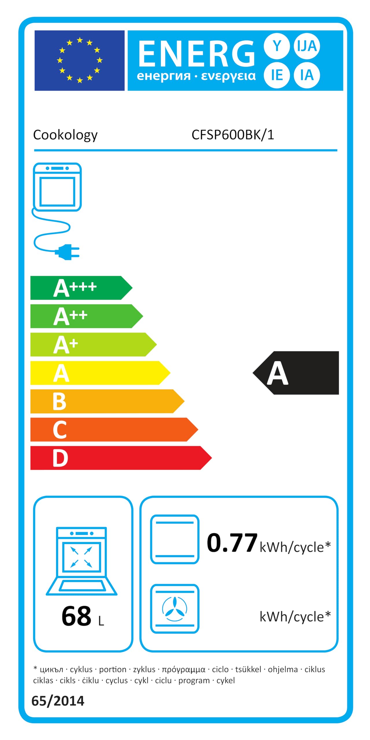 - DIMENSIONS: This oven has an ample capacity of 68 litres. It is 60cm Width x 60cm Depth x 90cm Height and weights 36.5kg.