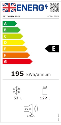 Fridgemaster MC50165EB 50cm Freestanding 60/40 Fridge Freezer - 175-litre capacity with Crisper box - Reversible Door - LED Lighting- 4 Star Freezer Rating - Black - E Rated