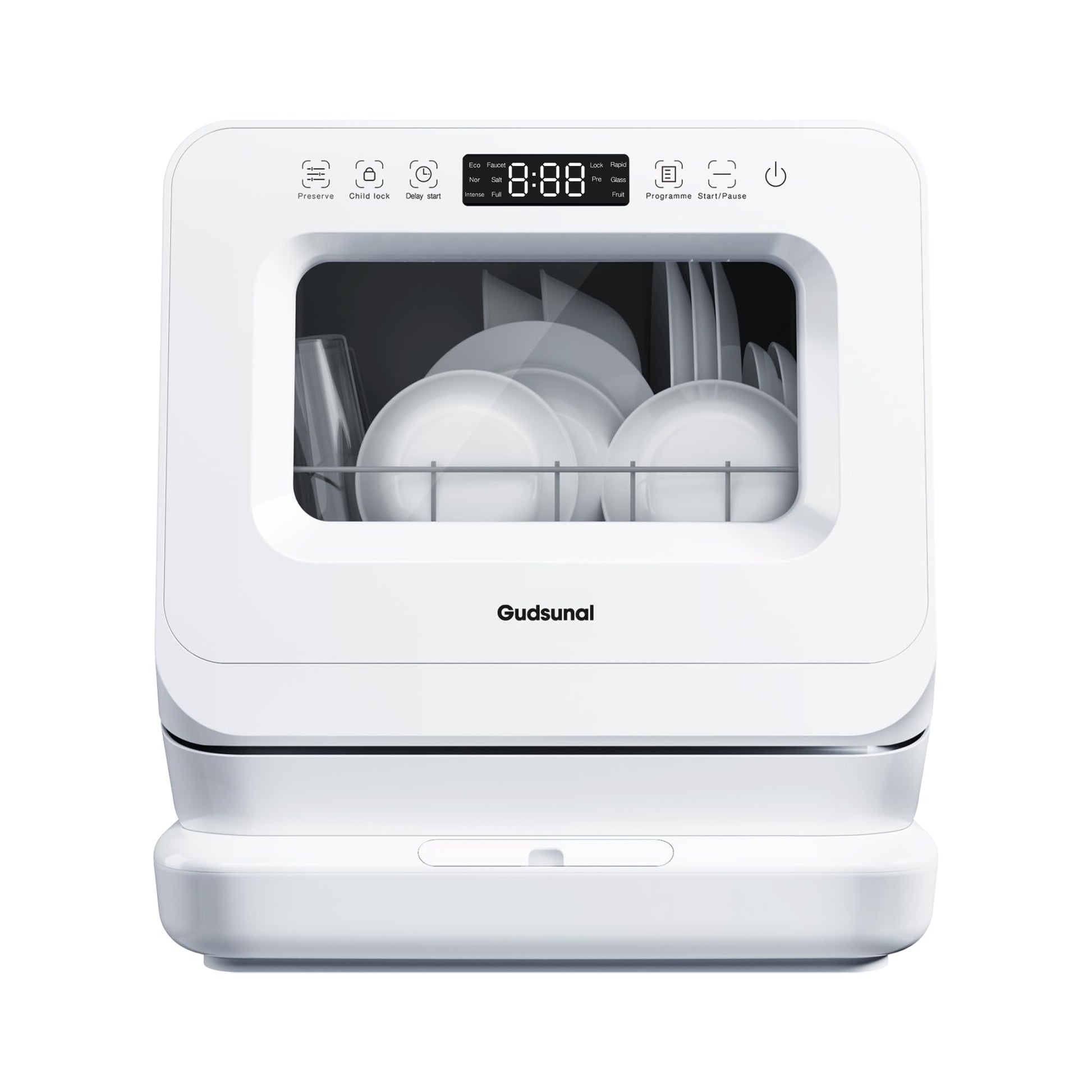 Gudsunal Table Top Dishwasher Countertop, 7L Detachable Water Tank, 6 Programs,No Hookup Needed, 192β HI-Temp Hygiene, Hybrid Drying & Preserve Fuction, Mini Dishwasher for RV & Apartment,White