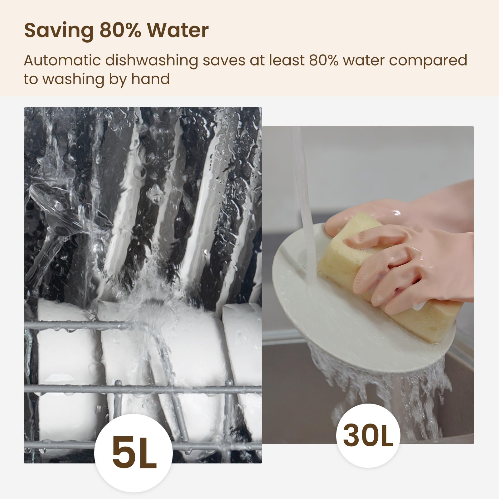 - 【BABY CARE & DRYING FUNCTION】 Heavy/Baby Care mode washes at 75℃, which is great for baby products and oily dishes, cleaning them more thoroughly. Also, the machine is equipped with a drying mode that provides 60 minutes of hot air drying and 72 hours of automatic ventilation to keep your dishes clean and dry as well as prevent odors.