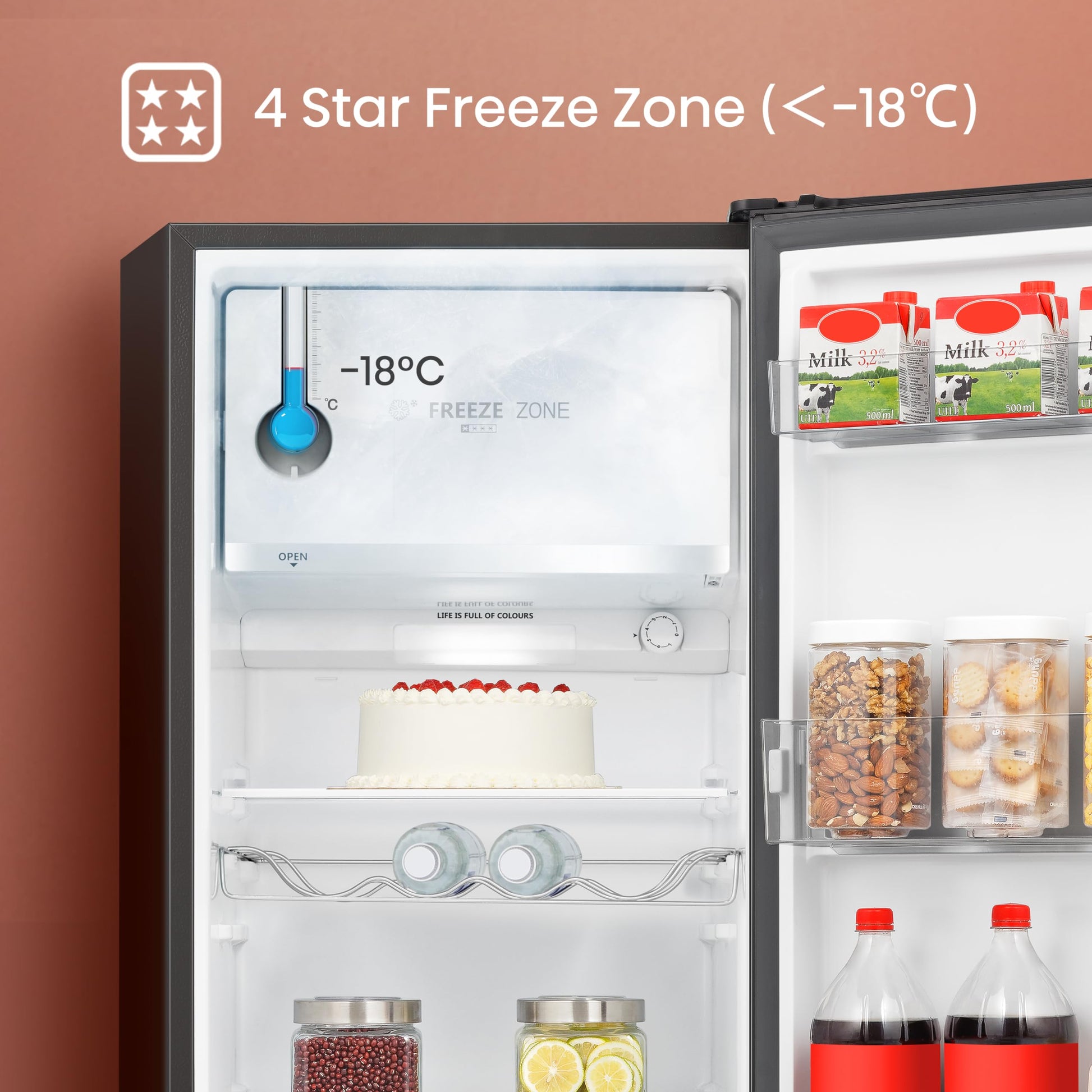 Hisense RR220D4BBE 52cm Freestanding Retro Fridge - 165-litre capacity with 4 star Ice box - Auto Defrost - Wine Rack - Black- E Rated, H128 x W51.9 x D51.3