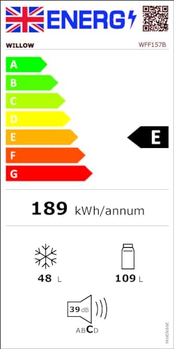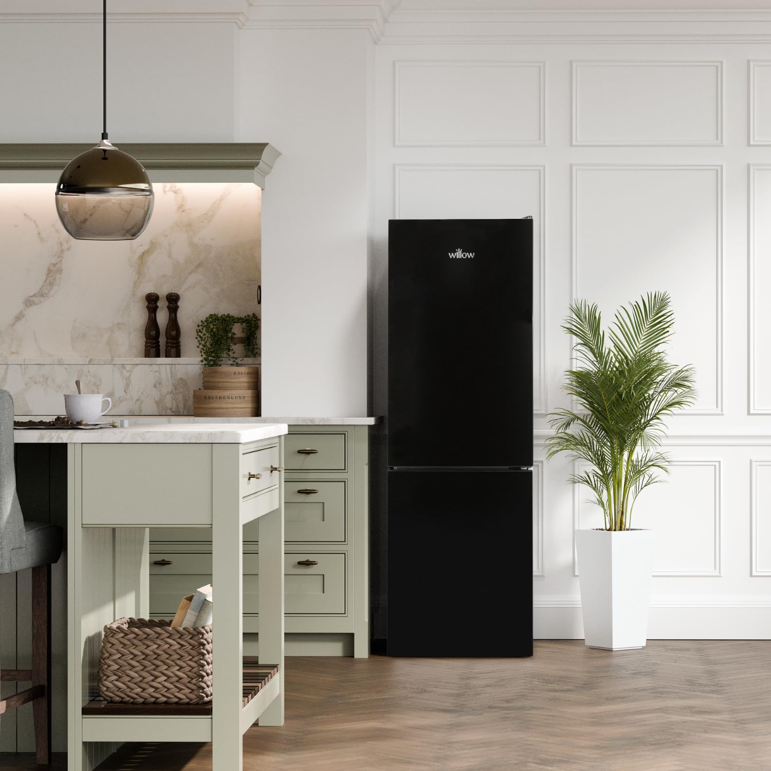 Willow WFF157B 157L Freestanding 70/30 Fridge Freezer with Adjustable Thermostat, Mark-Proof Finish, Low Frost, 2 Year Warranty - Black